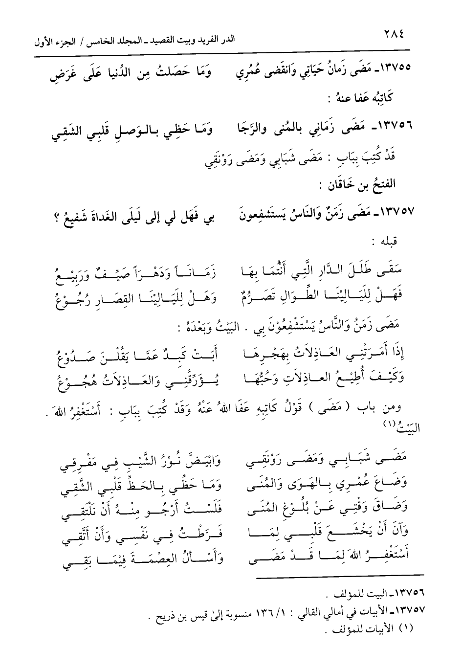 ومن باب (مَضى) قَوْلُ كَاتِبهِ عَفَا اللَّهُ عَنْهُ وَقَدْ كُتِبَ ببَاب: أَسْتَغْفرُ اللَّهَ. البَيْتُ (¬1)