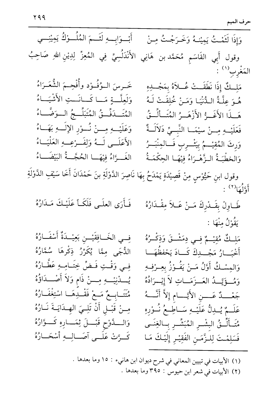 وقول أَبِي القَاسَمِ مُحَمَّد بن هَانِي الأَنْدَلُسِيِّ فِي المُعِزِّ لِدِيْنِ اللَّهِ صَاحِبُ المَغْرِبِ (¬1):