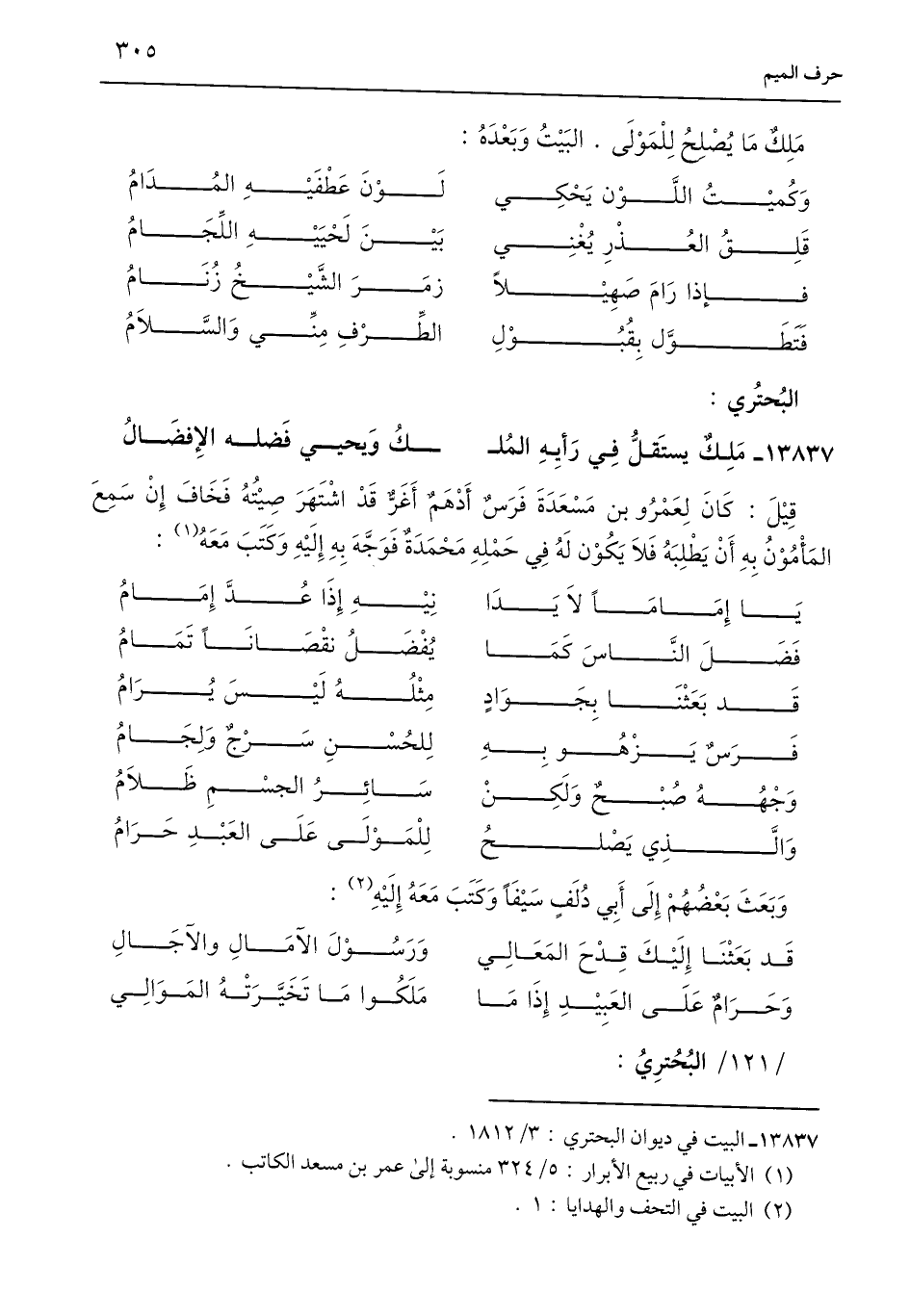 13837 - البيت في ديوان البحتري: 3/ 1812.