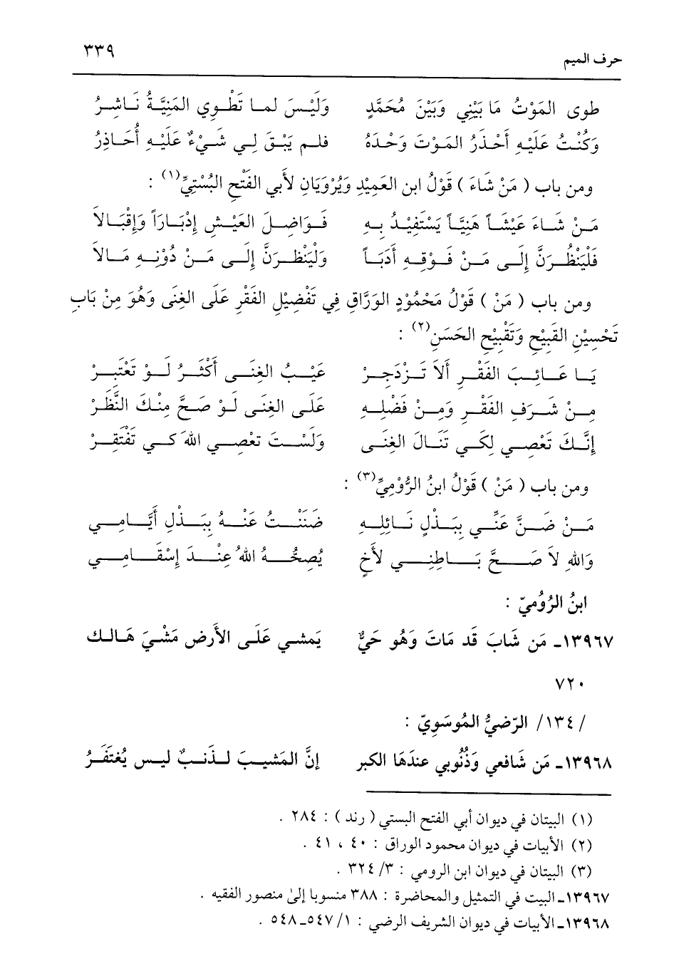 13967 - البيت في التمثيل والمحاضرة: 388 منسوبًا إلى منصور الفقيه.