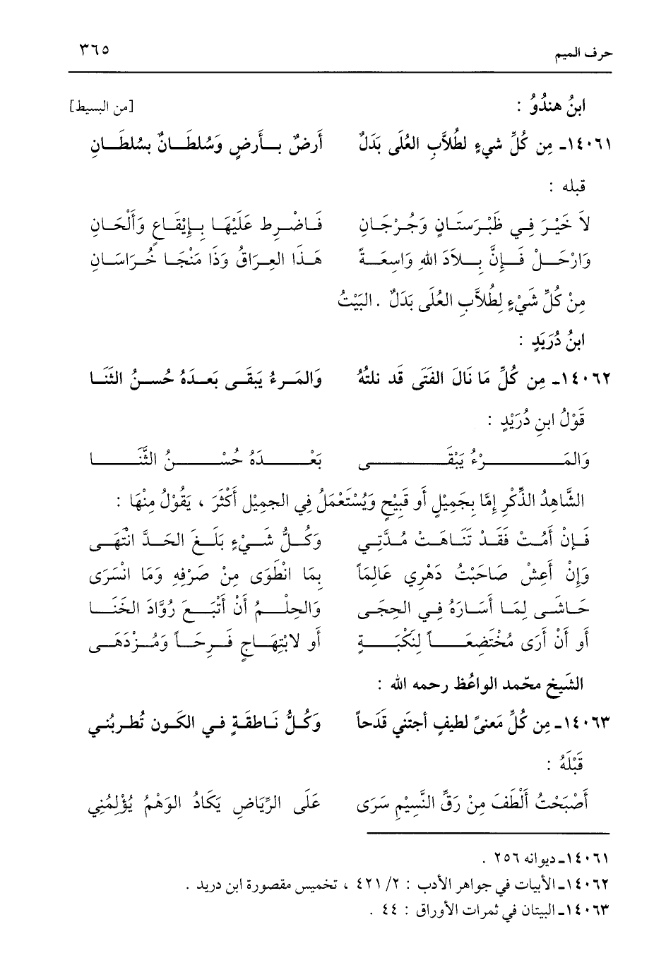 14062 - الأبيات في جواهر الأدب: 2/ 421، تخميس مقصورة ابن دريد.