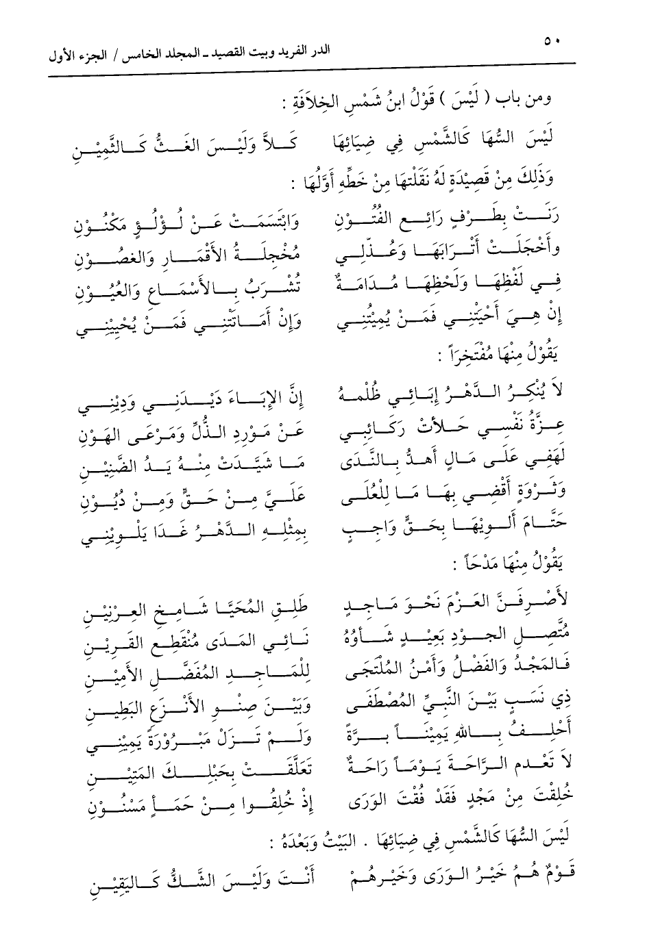 ومن باب (لَيْسَ) قَوْلُ ابْنُ شَمْسِ الخِلَافَةِ: