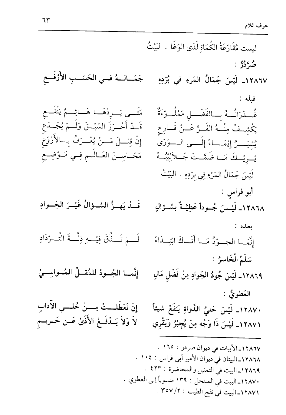 12867 - الأبيات في ديوان صردر: 165.