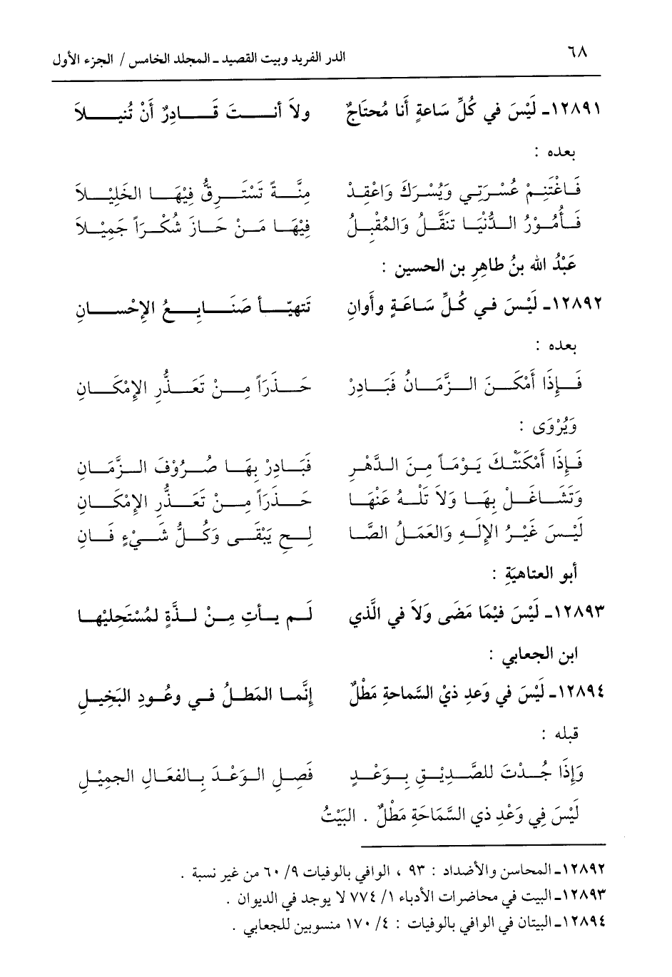 12894 - لَيْسَ في وَعدِ ذيْ السَّماحةِ مَطْلٌ ... إِنَّما المَطلُ في وعُودِ البَخِيلِ