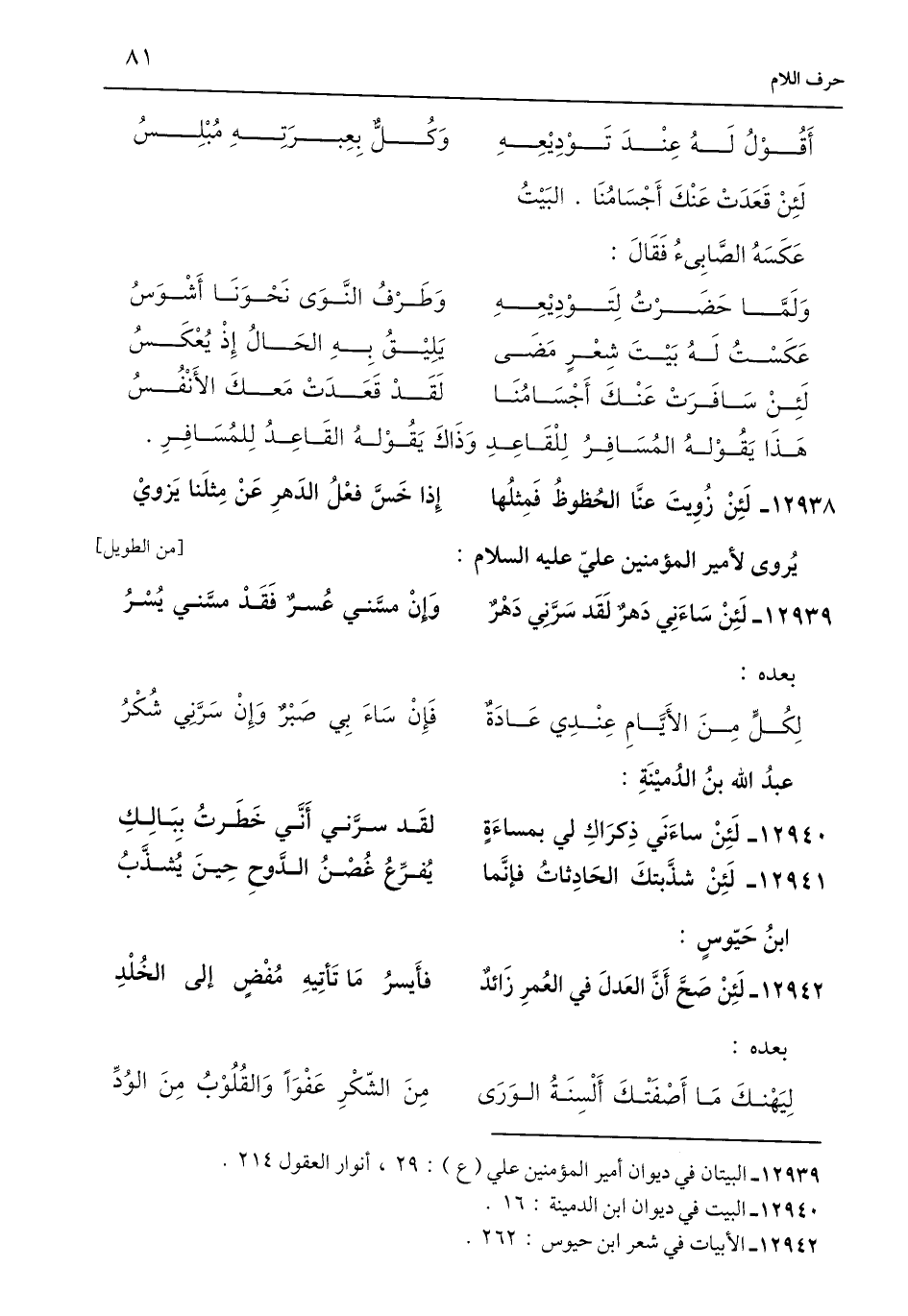 12939 - البيتان في ديوان أمير المؤمنين علي (ع): 29، أنوار العقول 214.