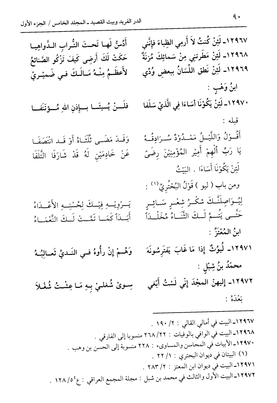 12968 - البيت في الوافي بالوفيات: 22/ 268 منسوبا إلى الفارقي.