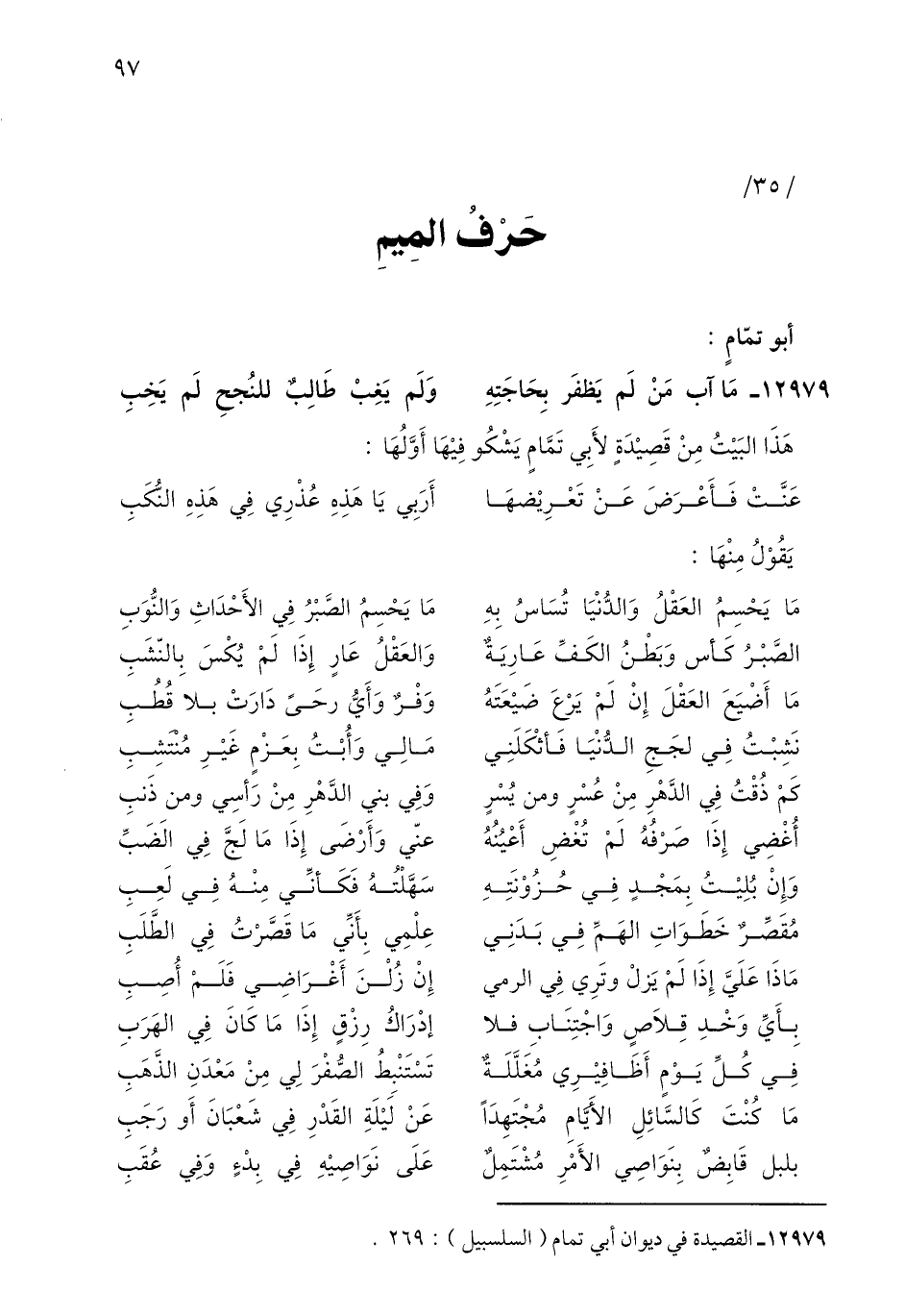 12979 - القصيدة في ديوان أبي تمام (السلسبيل): 269.