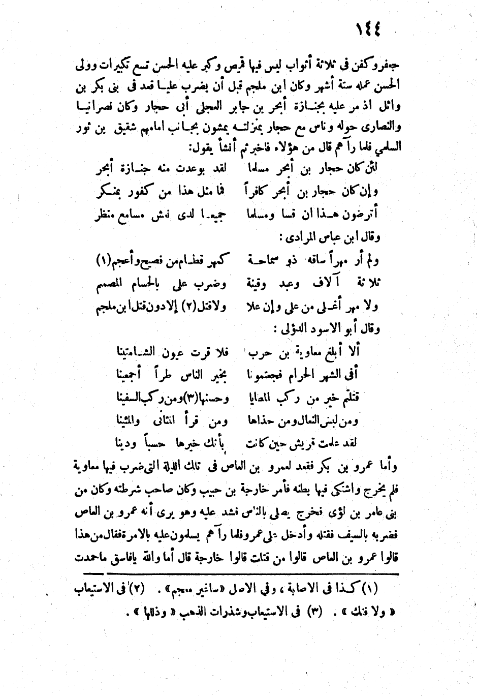 لَئِنْ كَانَ حَجَّارُ بْنُ أَبْجَرَ مُسْلِمًا ... لَقَدْ بُوعِدَتْ مِنْهُ جِنَازَةُ أَبْجَرِ