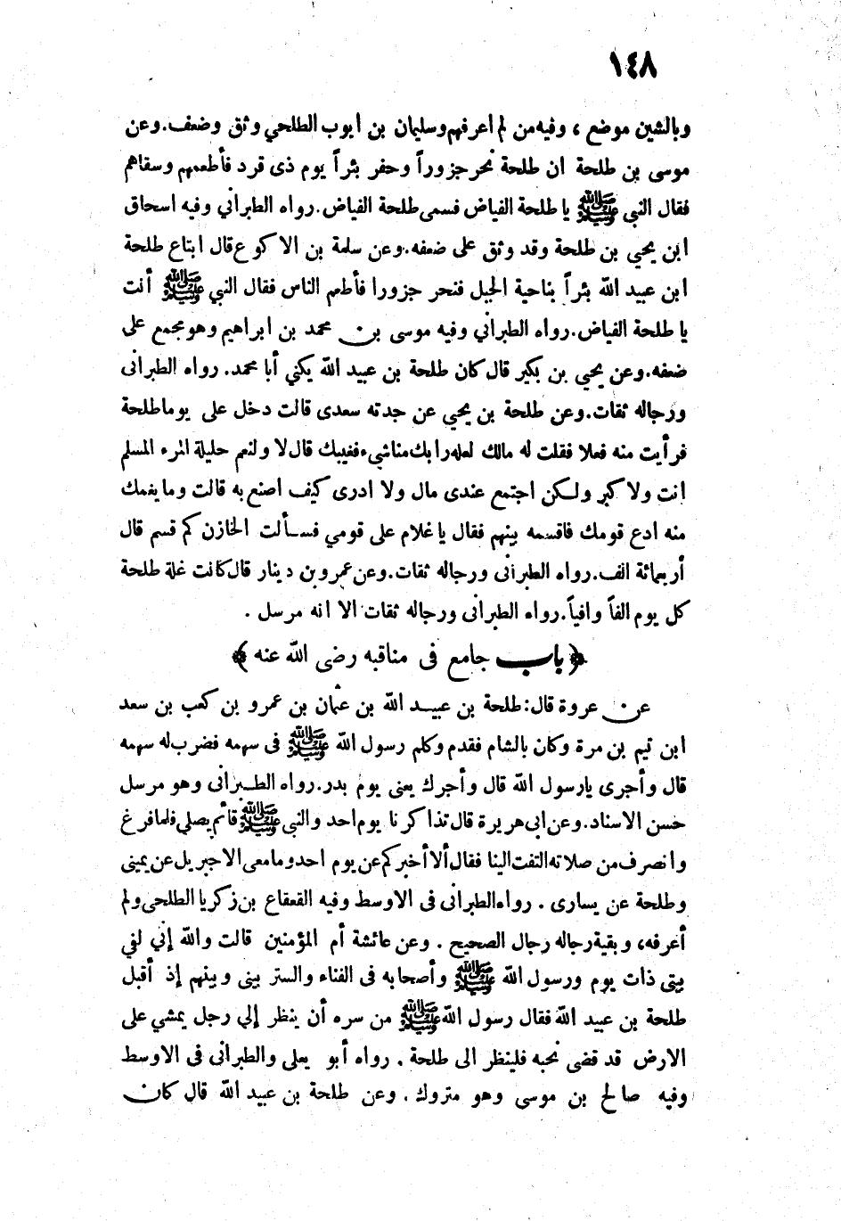 14813 - وَعَنْ طَلْحَةَ بْنِ عُبَيْدِ اللَّهِ قَالَ: «كَانَ
