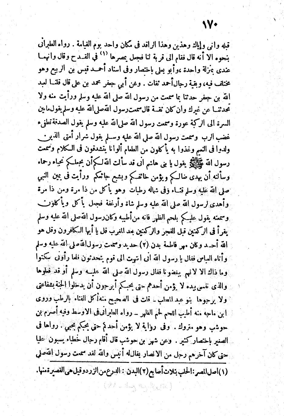رَوَاهُ الطَّبَرَانِيُّ بِنَحْوِهِ، إِلَّا أَنَّهُ قَالَ: «فَقَامَ إِلَى قِرْبَةٍ لَنَا، فَجَعَلَ يُمَصِّرُهَا فِي الْقَدَحِ، وَقَالَ: " إِنَّهُمَا عِنْدِي بِمَنْزِلَةٍ وَاحِدَةٍ».