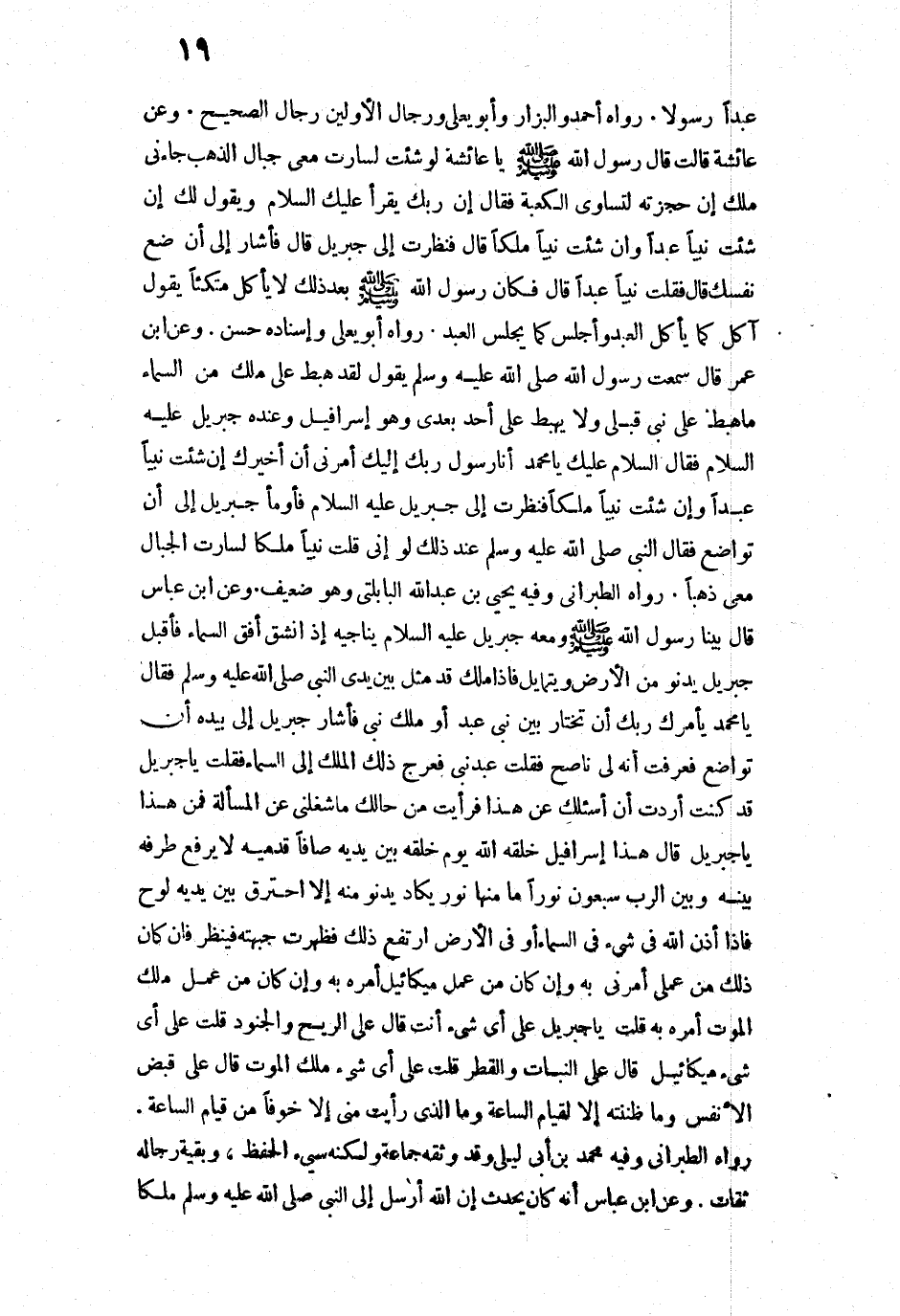 14211 - وَعَنِ ابْنِ عُمَرَ قَالَ: «سَمِعْتُ رَسُولَ اللَّهِ - صَلَّى اللَّهُ عَلَيْهِ وَسَلَّمَ - يَقُولُ: " لَقَدْ هَبَطَ عَلَيَّ مَلَكٌ مِنَ السَّمَاءِ مَا هَبَطَ عَلَى نَبِيٍّ قَبْلِي، وَلَا يَهْبِطُ عَلَى أَحَدٍ بَعْدِي، وَهُوَ إِسْرَافِيلُ، وَعِنْدَهُ جِبْرِيلُ - عَلَيْهِ السَّلَامُ - فَقَالَ: السَّلَامُ عَلَيْكَ يَا مُحَمَّدُ، أَنَا رَسُولُ رَبِّكَ إِلَيْكَ، أَمَرَنِي أَنْ أُخَيِّرَكَ إِنْ شِئْتَ نَبِيًّا عَبْدًا، وَإِنْ شِئْتَ نَبِيًّا مَلِكًا؟ فَنَظَرْتُ إِلَى جِبْرِيلَ - عَلَيْهِ السَّلَامُ - فَأَوْمَأَ جِبْرِيلُ إِلَيَّ: أَنْ تَوَاضَعْ ". فَقَالَ النَّبِيُّ - صَلَّى اللَّهُ عَلَيْهِ وَسَلَّمَ - عِنْدَ ذَلِكَ: " لَوْ أَنِّي قُلْتُ: نَبِيًّا مَلِكًا ; لَسَارَتِ الْجِبَالُ مَعِي ذَهَبًا» ".