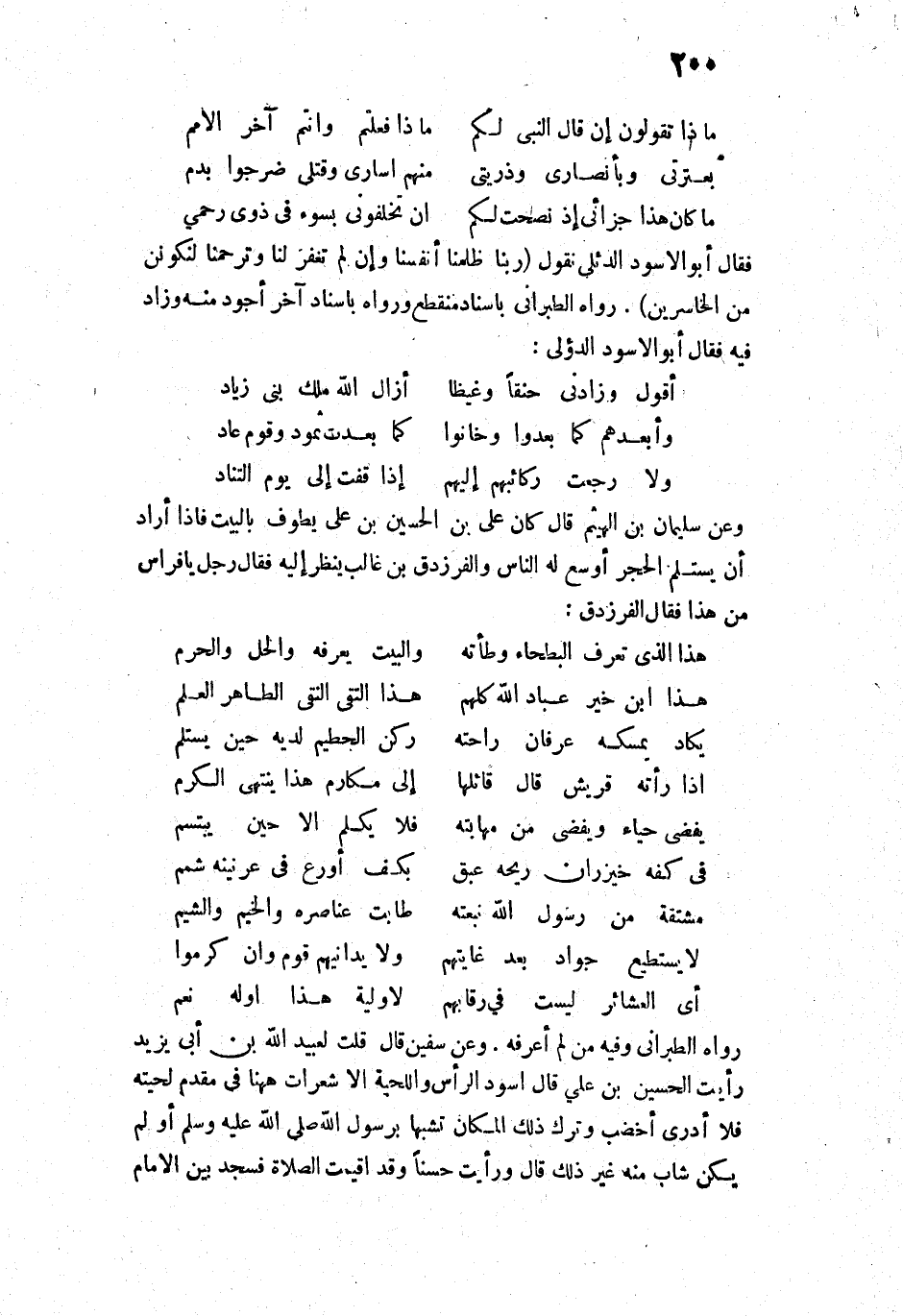 15185 - وَعَنْ سُلَيْمَانَ بْنِ الْهَيْثَمِ قَالَ: كَانَ عَلِيُّ بْنُ الْحُسَيْنِ بْنِ عَلِيٍّ يَطُوفُ بِالْبَيْتِ، فَإِذَا أَرَادَ أَنْ يَسْتَلِمَ الْحَجَرَ أَوْسَعَ لَهُ النَّاسُ، وَالْفَرَزْدَقُ بْنُ غَالِبٍ يَنْظُرُ إِلَيْهِ، فَقَالَ رَجُلٌ: [أَبَا] فِرَاسُ، مَنْ هَذَا؟ فَقَالَ الْفَرَزْدَقُ: