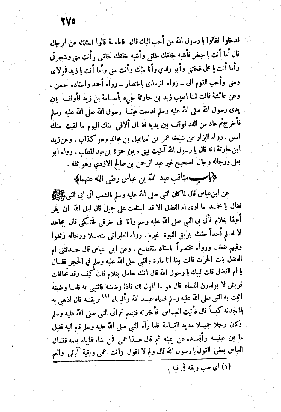 15513 - «عَنِ ابْنِ عَبَّاسٍ قَالَ: لَمَّا كَانَ النَّبِيُّ - صَلَّى اللَّهُ عَلَيْهِ وَسَلَّمَ - بِالشِّعْبِ أَتَى أَبِي النَّبِيَّ - صَلَّى اللَّهُ عَلَيْهِ وَسَلَّمَ - فَقَالَ: يَا مُحَمَّدُ، مَا أَرَى أُمَّ الْفَضْلِ إِلَّا قَدِ اعْتَمَلَتْ عَلَى جَمَلٍ قَالَ: " لَعَلَّ اللَّهَ أَنْ يَقَرَّ أَعْيُنَنَا بِغُلَامٍ ". فَأَتَى بِيَ النَّبِيَّ - صَلَّى اللَّهُ عَلَيْهِ وَسَلَّمَ - وَأَنَا فِي خِرْقِي، فَحَنَّكَنِي. قَالَ مُجَاهِدٌ: لَا نَعْلَمُ أَحَدًا حُنِّكَ بِرِيقِ النُّبُوَّةِ غَيْرَهُ».