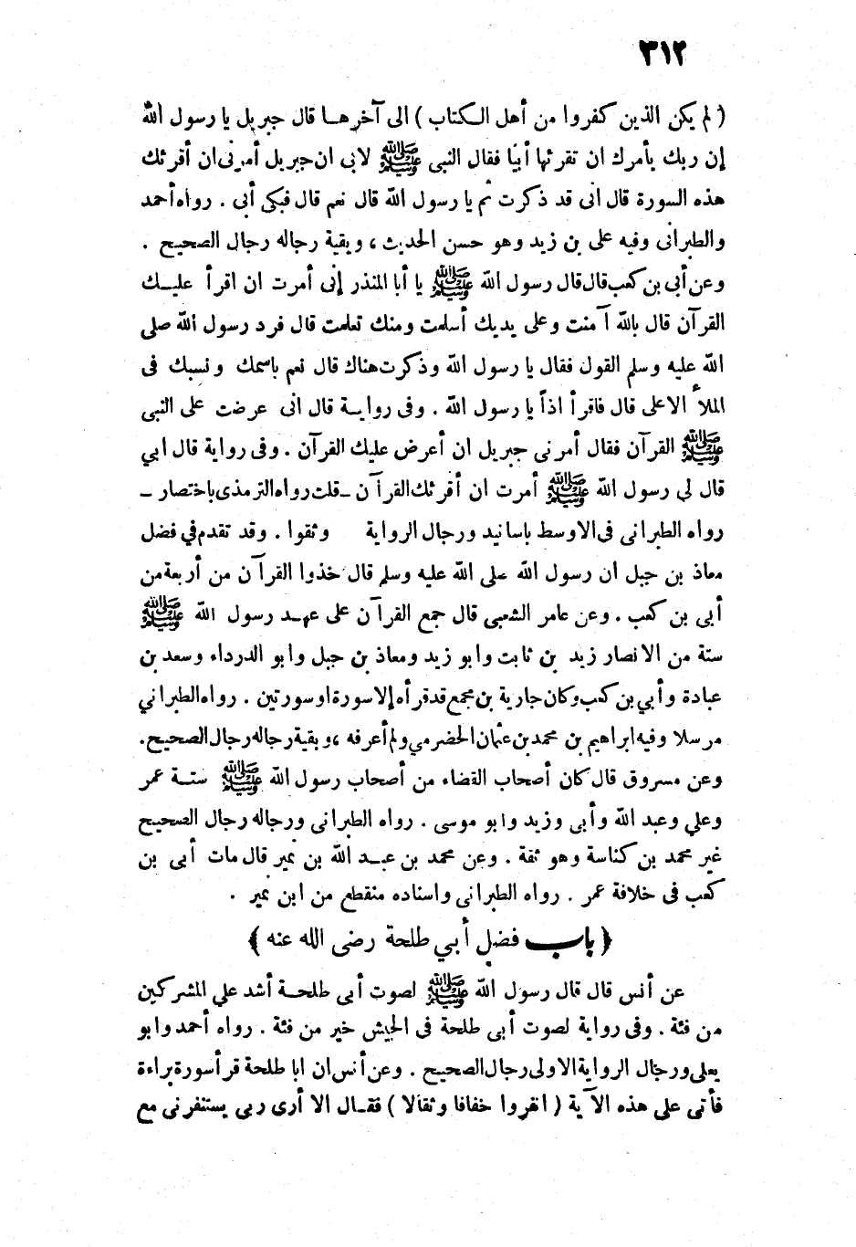 {لَمْ يَكُنِ الَّذِينَ كَفَرُوا مِنْ أَهْلِ الْكِتَابِ} [البينة: 1] إِلَى آخِرِهَا قَالَ جِبْرِيلُ: يَا رَسُولَ اللَّهِ، إِنْ رَبَّكَ يَأْمُرُكَ أَنْ تُقْرِئَهَا أُبَيًّا، فَقَالَ النَّبِيُّ - صَلَّى اللَّهُ عَلَيْهِ وَسَلَّمَ - لِأُبَيٍّ: ": إِنَّ جِبْرِيلَ أَمَرَنِي أَنْ أُقْرِئَكَ هَذِهِ السُّورَةَ ". قَالَ: إِنِّي قَدْ ذُكِرْتُ ثَمَّ يَا رَسُولَ اللَّهِ؟ قَالَ: " نَعَمْ ". قَالَ: فَبَكَى أُبَيٌّ».