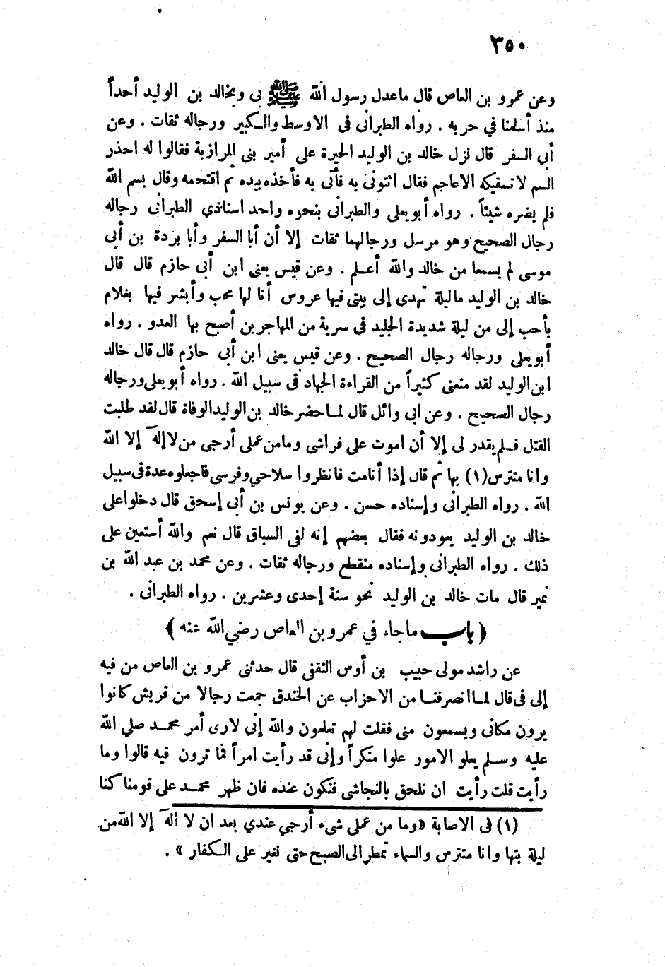 15883 - «وَعَنْ عَمْرِو بْنِ الْعَاصِ قَالَ: مَا عَدَلَ رَسُولُ اللَّهِ - صَلَّى اللَّهُ عَلَيْهِ وَسَلَّمَ - بِي وَبِخَالِدِ بْنِ الْوَلِيدِ أَحَدًا مُنْذُ أَسْلَمْنَا فِي حَرْبِهِ».