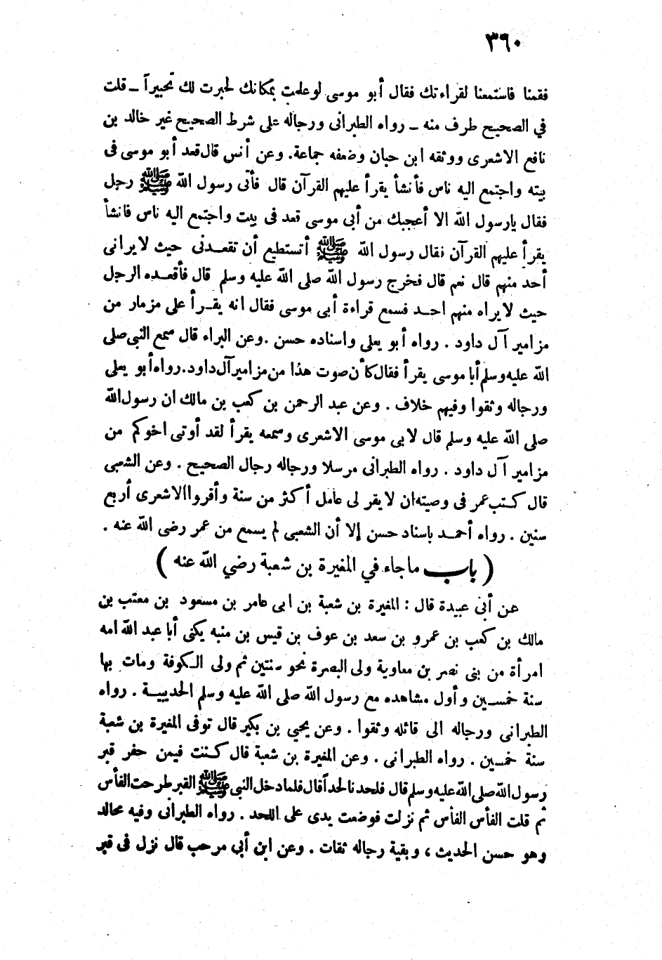 15943 - «وَعَنْ أَنَسٍ قَالَ: قَعَدَ أَبُو مُوسَى فِي بَيْتِهِ، وَاجْتَمَعَ إِلَيْهِ نَاسٌ، فَأَنْشَأَ يَقْرَأُ عَلَيْهِمُ الْقُرْآنَ. قَالَ: فَأَتَى رَسُولَ اللَّهِ - صَلَّى اللَّهُ عَلَيْهِ وَسَلَّمَ - رَجُلٌ فَقَالَ: يَا رَسُولَ اللَّهِ، أَلَا أَعْجَبَكَ مِنْ أَبِي مُوسَى، قَعَدَ فِي بَيْتٍ وَاجْتَمَعَ إِلَيْهِ نَاسٌ فَأَنْشَأَ يَقْرَأُ عَلَيْهِمُ الْقُرْآنَ؟ فَقَالَ رَسُولُ اللَّهِ - صَلَّى اللَّهُ عَلَيْهِ وَسَلَّمَ -: " أَتَسْطِيعُ أَنْ تُقْعِدَنِي حَيْثُ لَا يَرَانِي أَحَدٌ مِنْهُمْ؟ ". قَالَ: نَعَمْ. فَخَرَجَ رَسُولُ اللَّهِ - صَلَّى اللَّهُ عَلَيْهِ وَسَلَّمَ -. قَالَ: فَأَقْعَدَهُ الرَّجُلُ حَيْثُ لَا يَرَاهُ مِنْهُمْ أَحَدٌ، فَسَمِعَ قِرَاءَةَ أَبِي مُوسَى، فَقَالَ: " إِنَّهُ يَقْرَأُ عَلَى مِزْمَارٍ مِنْ مَزَامِيرِ آلِ دَاوُدَ».