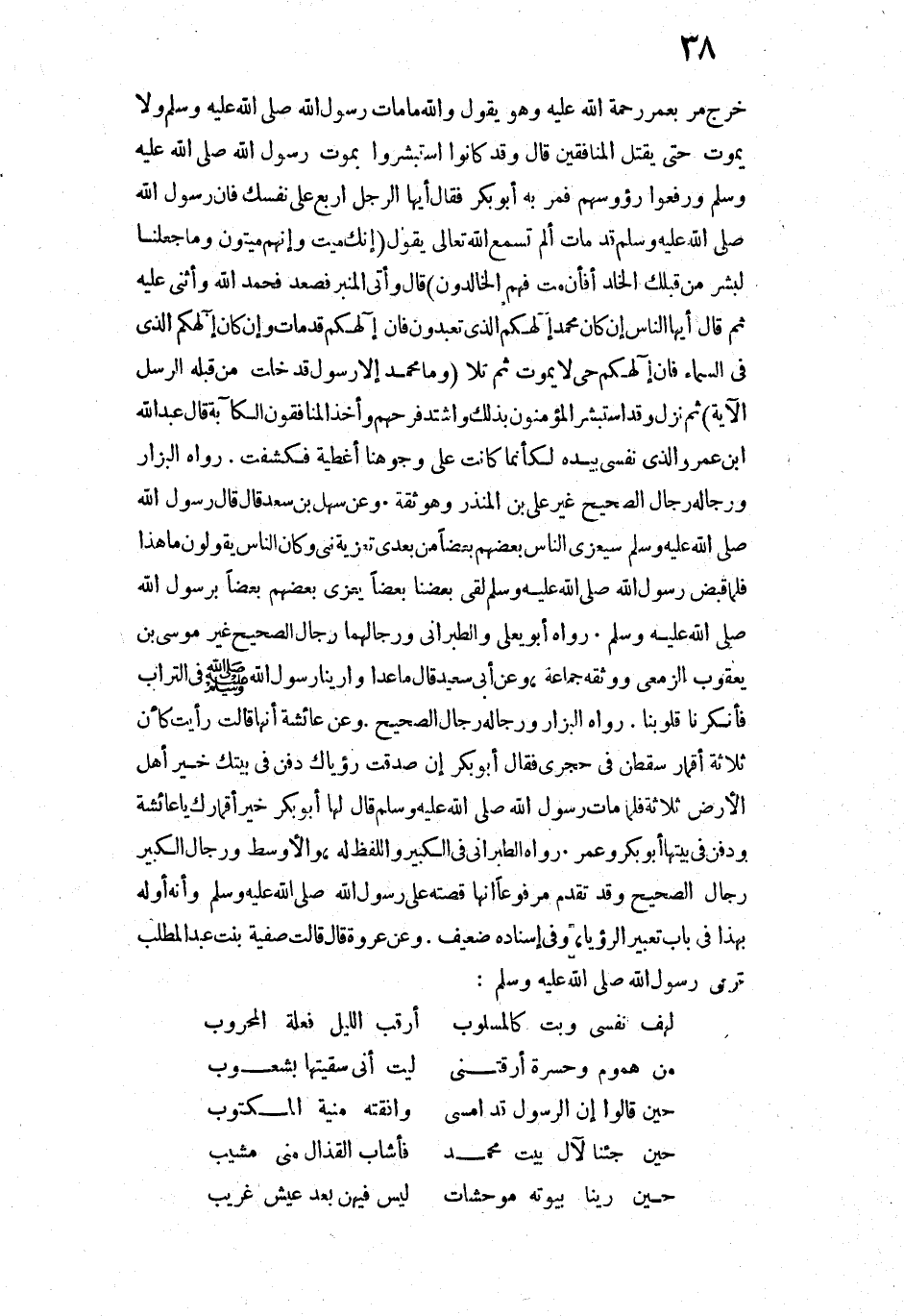 حِينَ قَالُوا إِنَّ الرَّسُولَ قَدْ أَمْسَى ... وَافَقَتْهُ مَنِيَّةُ الْمَكْتُوبِ