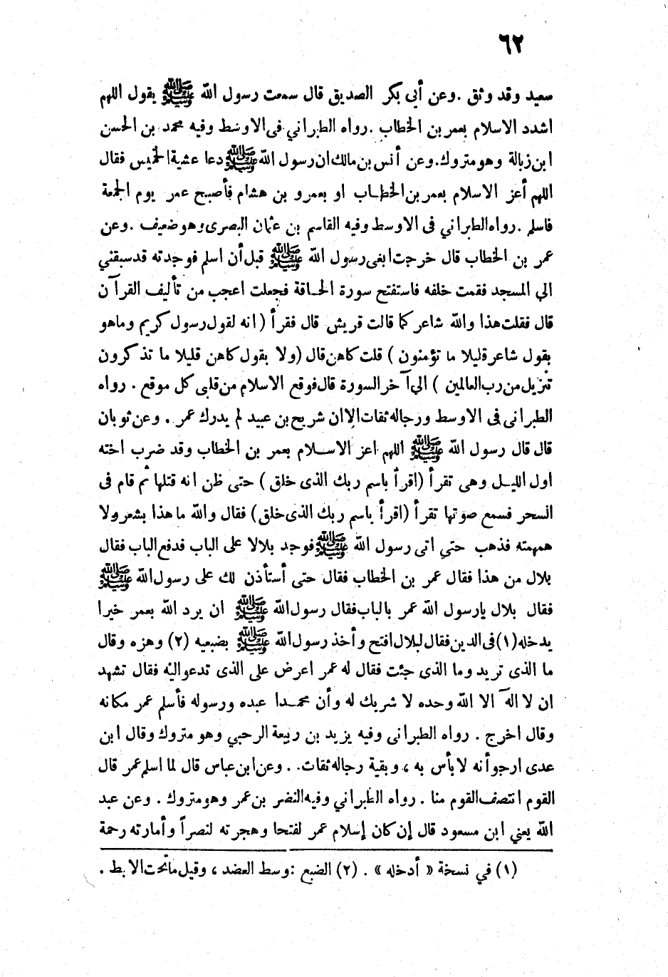 رَوَاهُ الطَّبَرَانِيُّ فِي الْأَوْسَطِ، وَرِجَالُهُ ثِقَاتٌ، إِلَّا أَنَّ شُرَيْحَ بْنَ عُبَيْدٍ لَمْ يُدْرِكْ عُمَرَ.