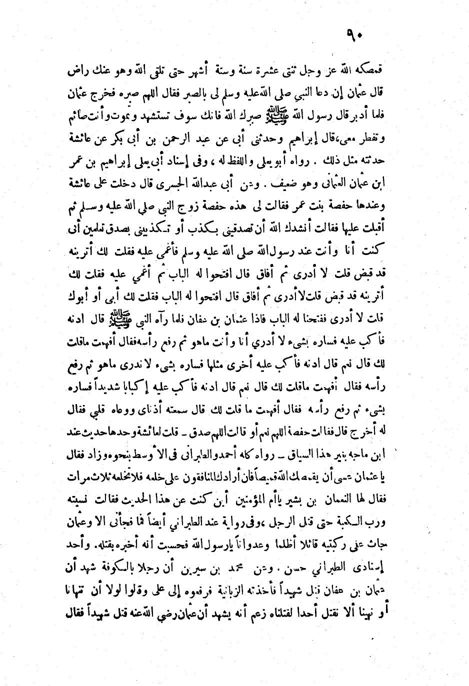 رَوَاهُ كُلُّهُ أَحْمَدُ، وَالطَّبَرَانِيُّ فِي الْأَوْسَطِ بِنَحْوِهِ، وَزَادَ: فَقَالَ: " «يَا عُثْمَانُ، عَسَى أَنْ يُقَمِّصَكَ اللَّهُ قَمِيصًا، فَانْ أَرَادَكَ الْمُنَافِقُونَ عَلَى خَلْعِهِ فَلَا تَخْلَعْهُ ". ثَلَاثَ مَرَّاتٍ. فَقَالَ لَهَا النُّعْمَانُ بْنُ بَشِيرٍ: يَا أُمَّ الْمُؤْمِنِينَ، أَيْنَ كُنْتِ عَنْ هَذَا الْحَدِيثِ؟ فَقَالَتْ: نَسِيتُهُ وَرَبِّ الْكَعْبَةِ حَتَّى قُتِلَ الرَّجُلُ».