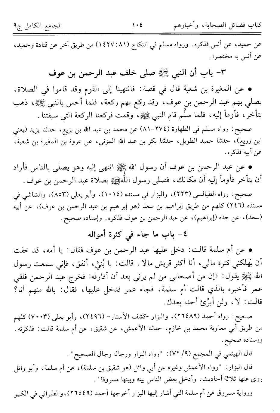 كتاب الجامع الكامل في الحديث الصحيح الشامل المرتب على أبواب الفقه (اسم الجزء: 9)