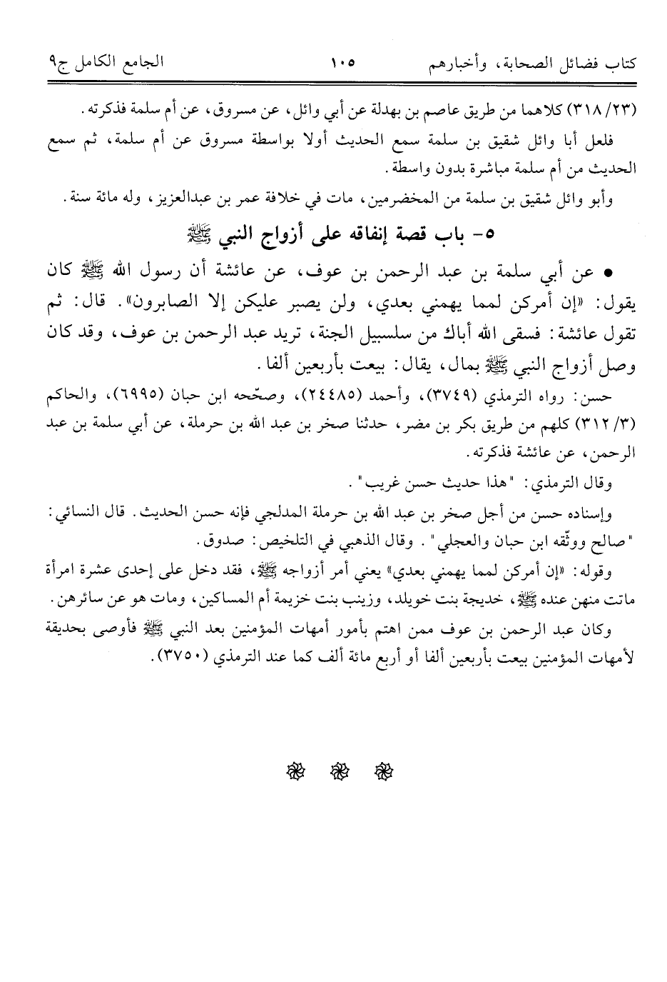 كتاب الجامع الكامل في الحديث الصحيح الشامل المرتب على أبواب الفقه (اسم الجزء: 9)