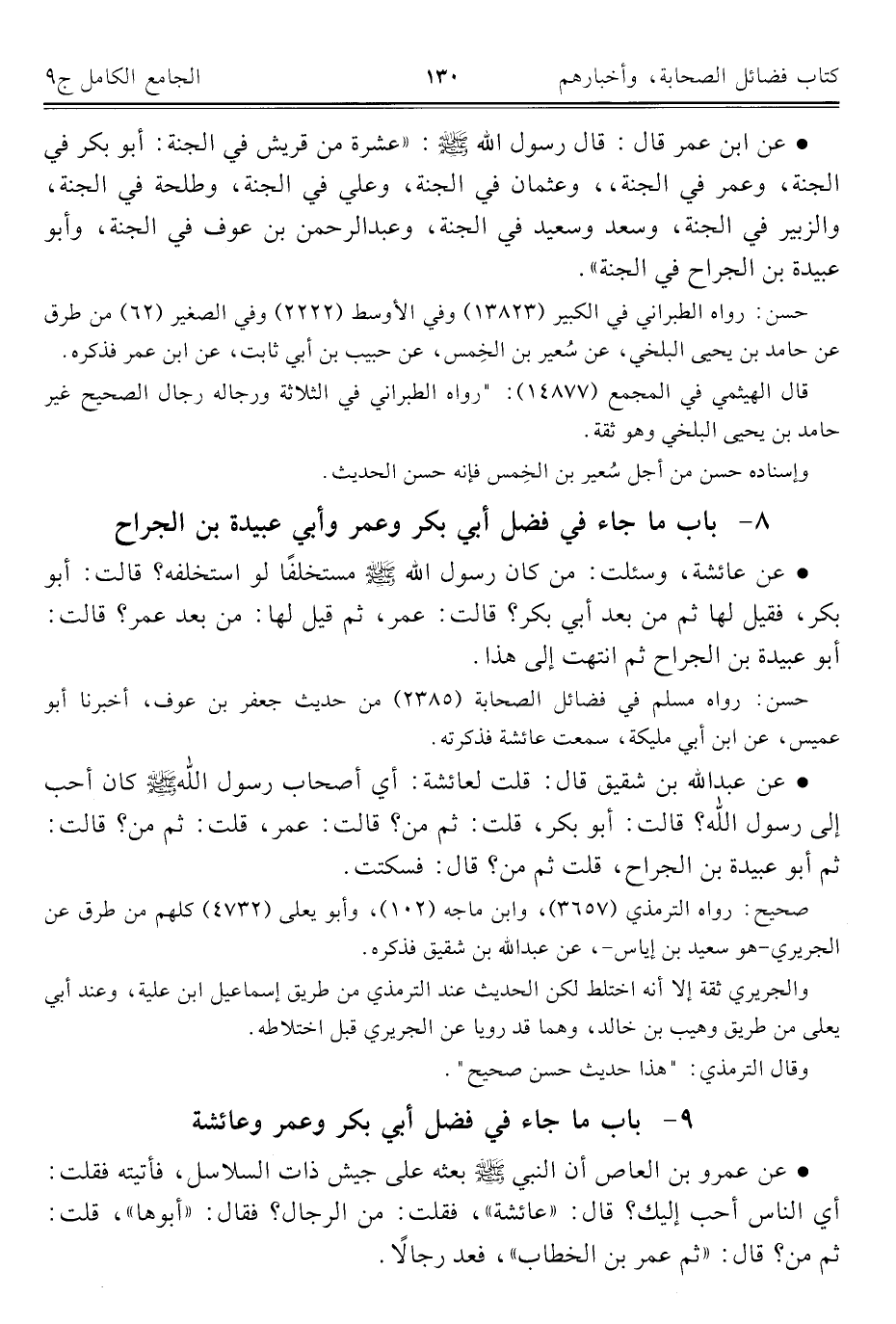 كتاب الجامع الكامل في الحديث الصحيح الشامل المرتب على أبواب الفقه (اسم الجزء: 9)