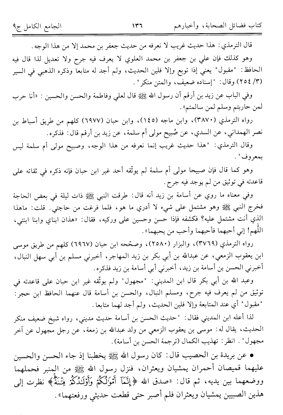 كتاب الجامع الكامل في الحديث الصحيح الشامل المرتب على أبواب الفقه (اسم الجزء: 9)
