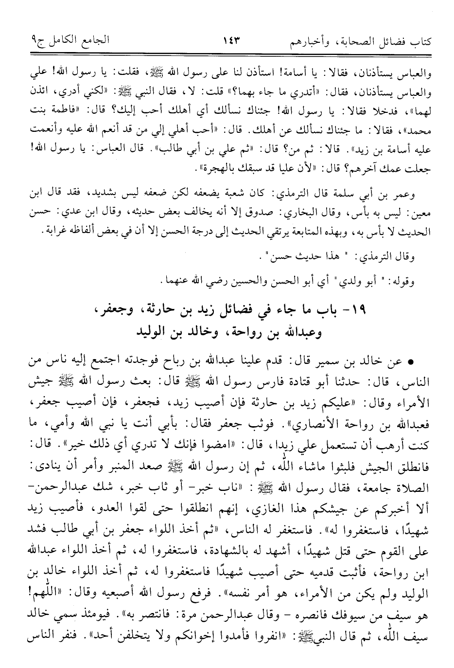 ١٩ - باب ما جاء في فضائل زيد بن حارثة، وجعفر، وعبد الله بن رواحة، وخالد بن الوليد