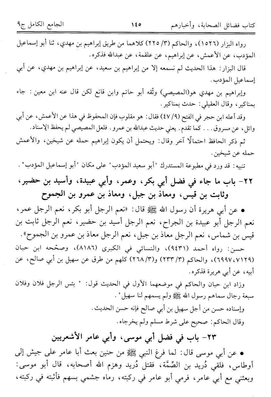 كتاب الجامع الكامل في الحديث الصحيح الشامل المرتب على أبواب الفقه (اسم الجزء: 9)