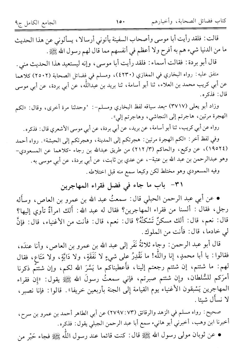 كتاب الجامع الكامل في الحديث الصحيح الشامل المرتب على أبواب الفقه (اسم الجزء: 9)