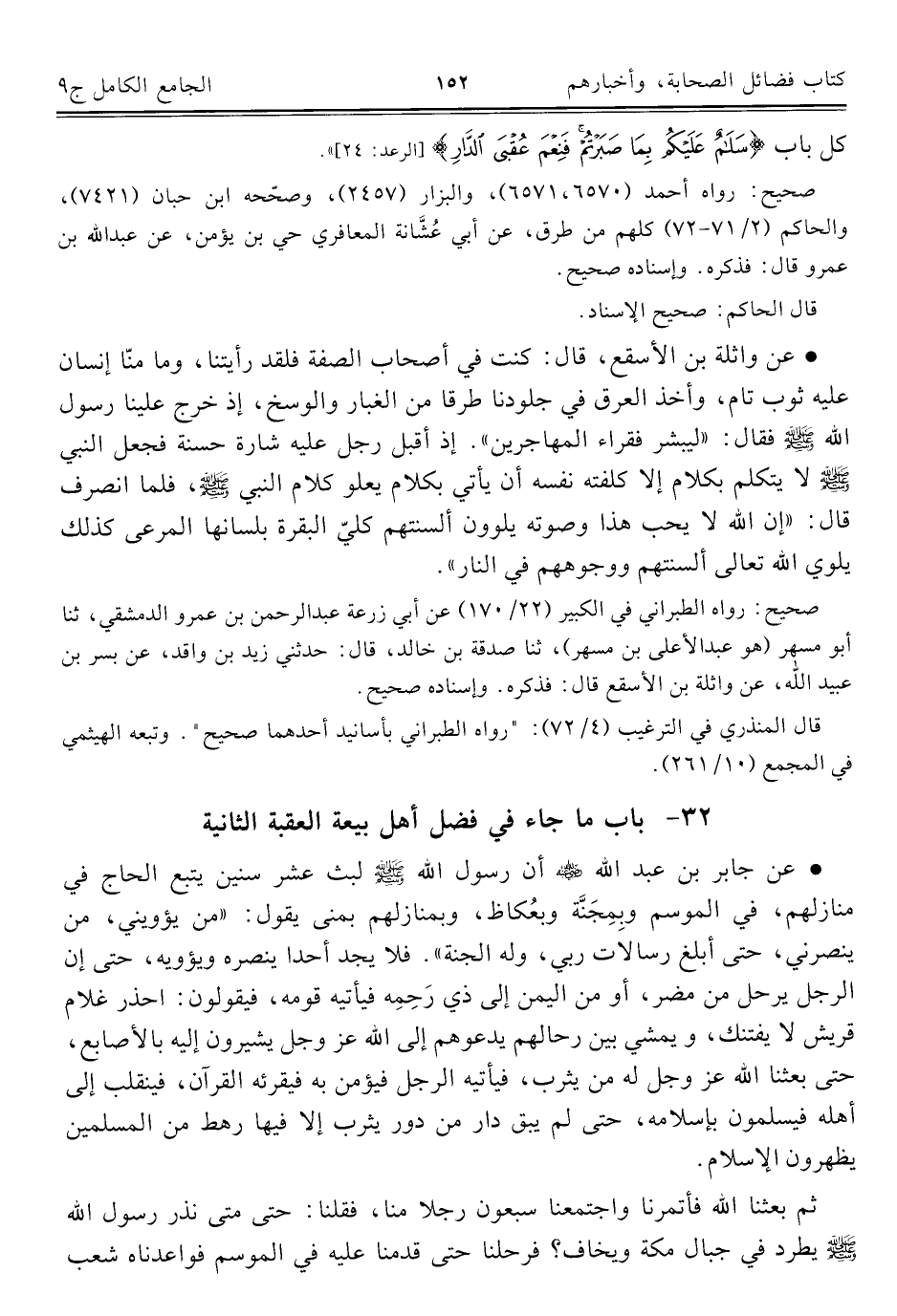 كتاب الجامع الكامل في الحديث الصحيح الشامل المرتب على أبواب الفقه (اسم الجزء: 9)