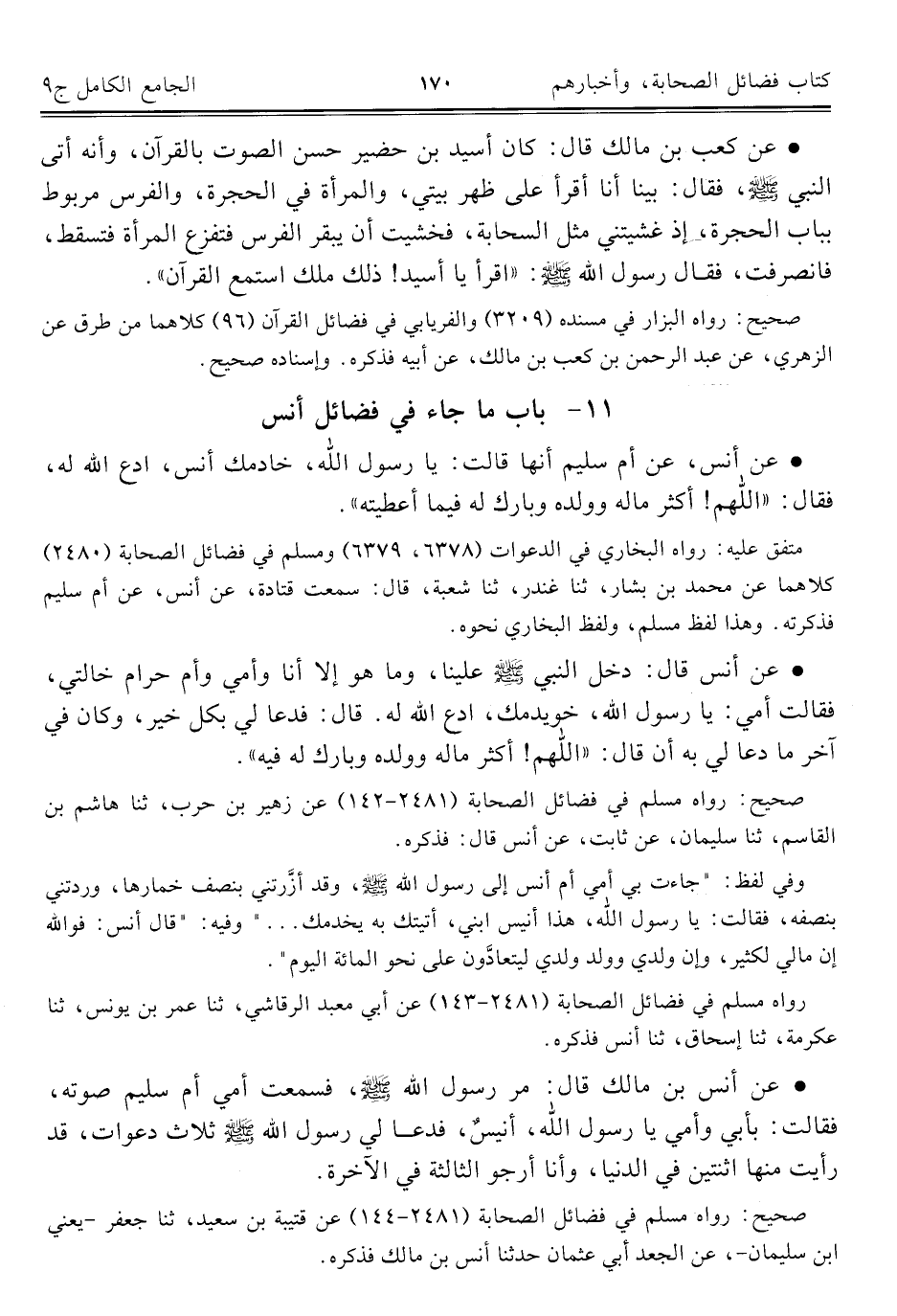 كتاب الجامع الكامل في الحديث الصحيح الشامل المرتب على أبواب الفقه (اسم الجزء: 9)