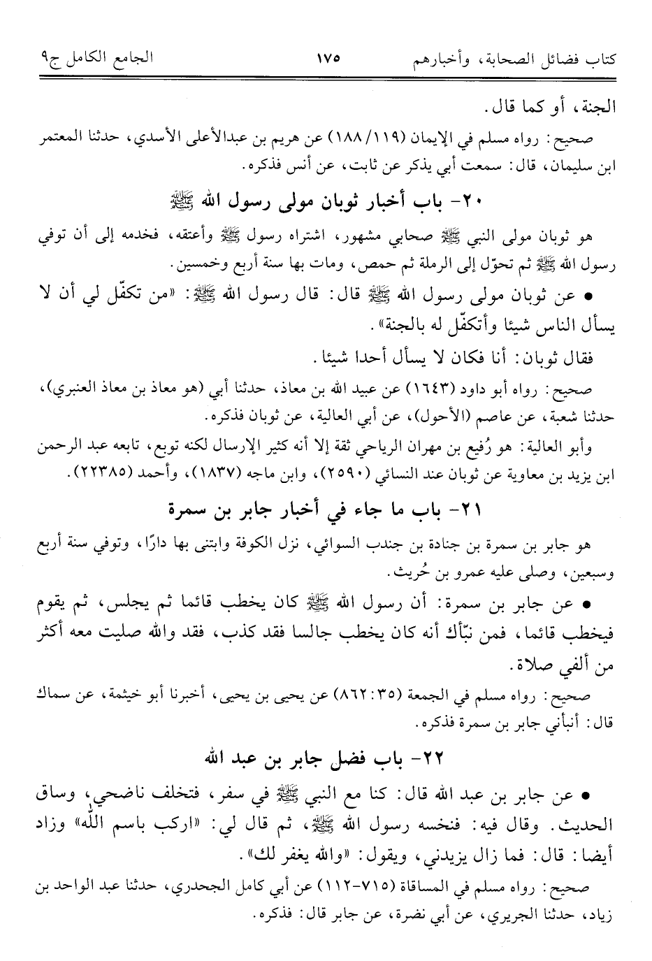 كتاب الجامع الكامل في الحديث الصحيح الشامل المرتب على أبواب الفقه (اسم الجزء: 9)