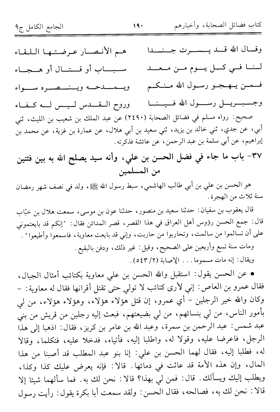 ٣٧ - باب ما جاء في فضل الحسن بن علي، وأنه سيد يصلح الله به بين فئتين من المسلمين