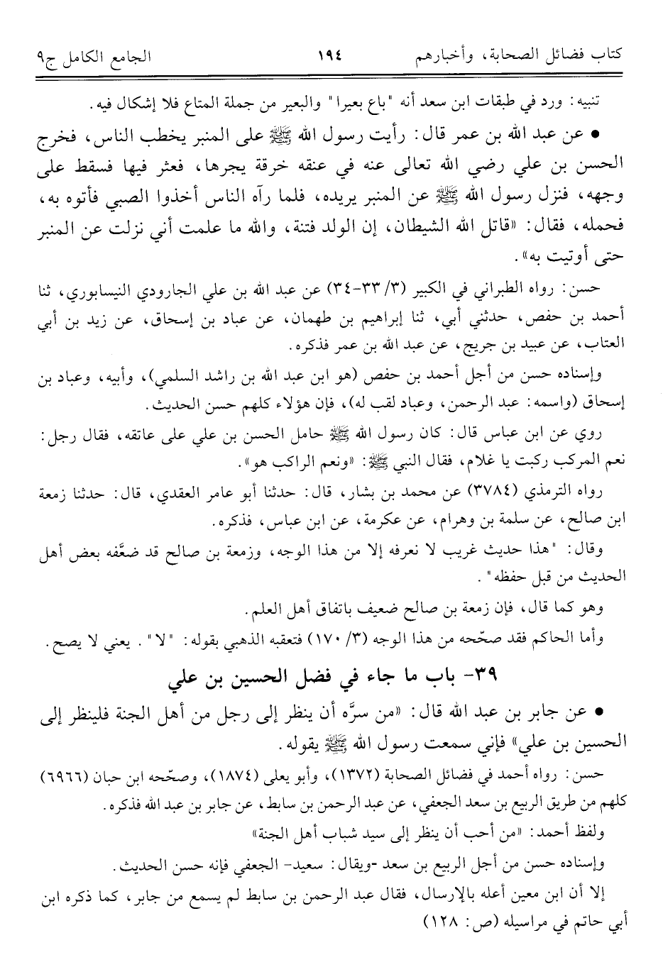 ٣٩ - باب ما جاء في فضل الحسين بن علي