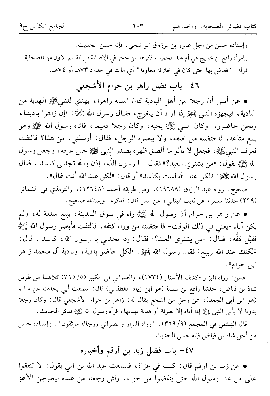 ٤٦ - باب فضل زاهر بن حرام الأشجعي