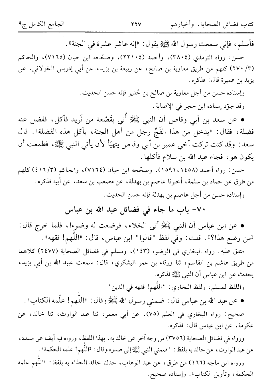 كتاب الجامع الكامل في الحديث الصحيح الشامل المرتب على أبواب الفقه (اسم الجزء: 9)