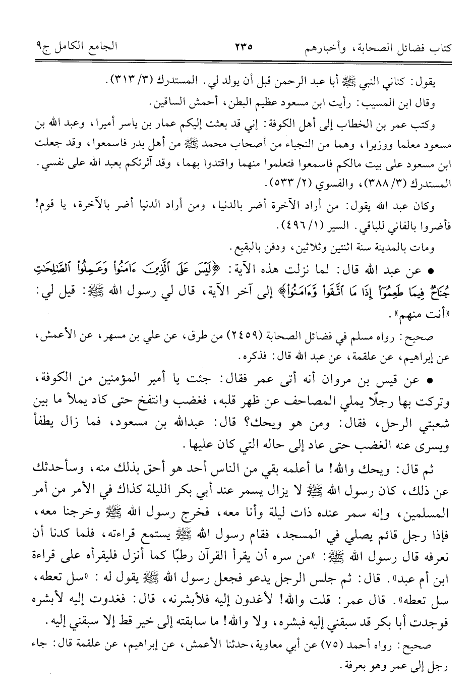 صحيح: رواه مسلم في فضائل الصّحابة (٢٤٥٩) من طرق، عن عليّ بن مسهر، عن الأعمش، عن إبراهيم، عن علقمة، عن عبد الله قال: فذكره.