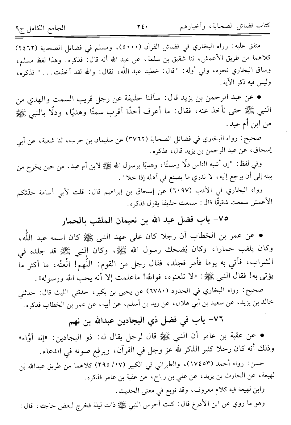 ٧٥ - باب فضل عبد الله بن نعيمان الملقب بالحمار