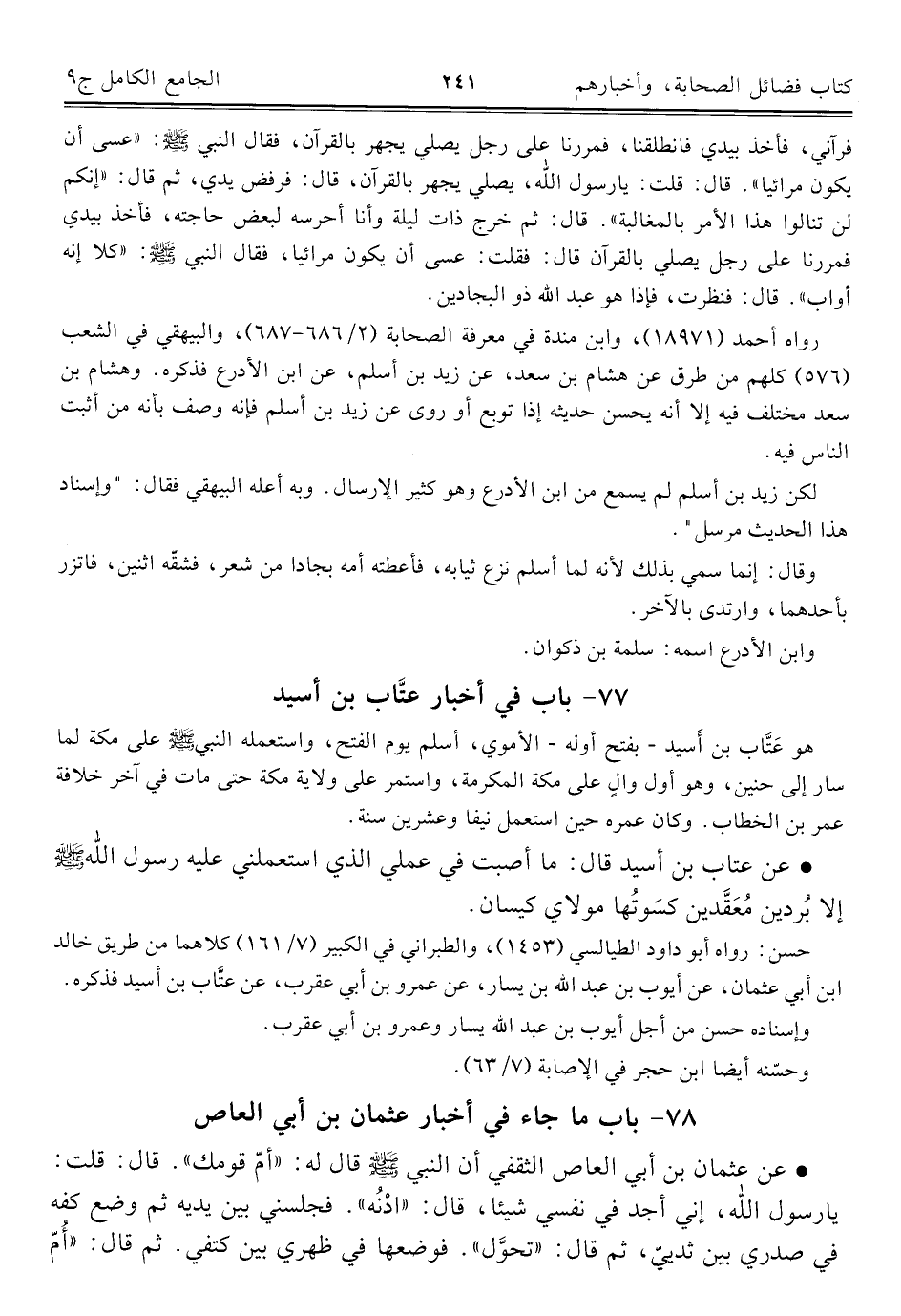 كتاب الجامع الكامل في الحديث الصحيح الشامل المرتب على أبواب الفقه (اسم الجزء: 9)