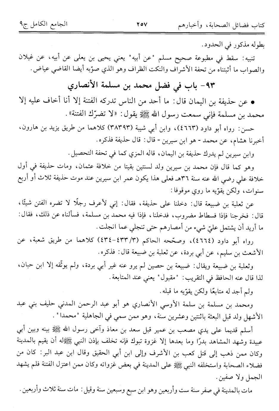 ٩٣ - باب في فضل محمد بن مسلمة الأنصاري