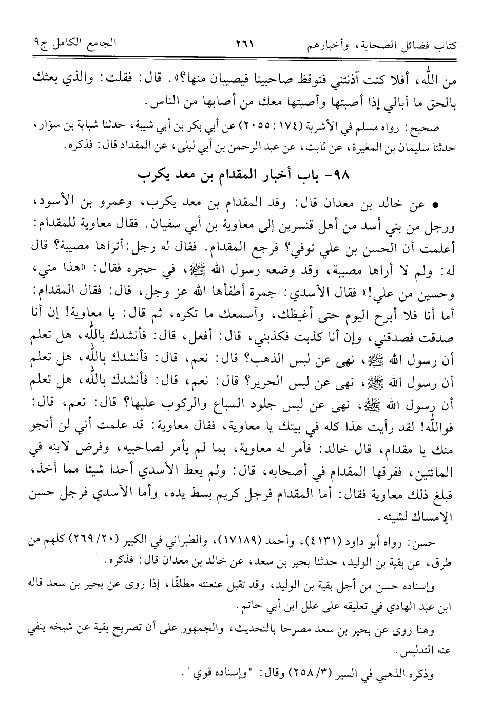 ٩٨ - باب أخبار المقدام بن معد يكرب
