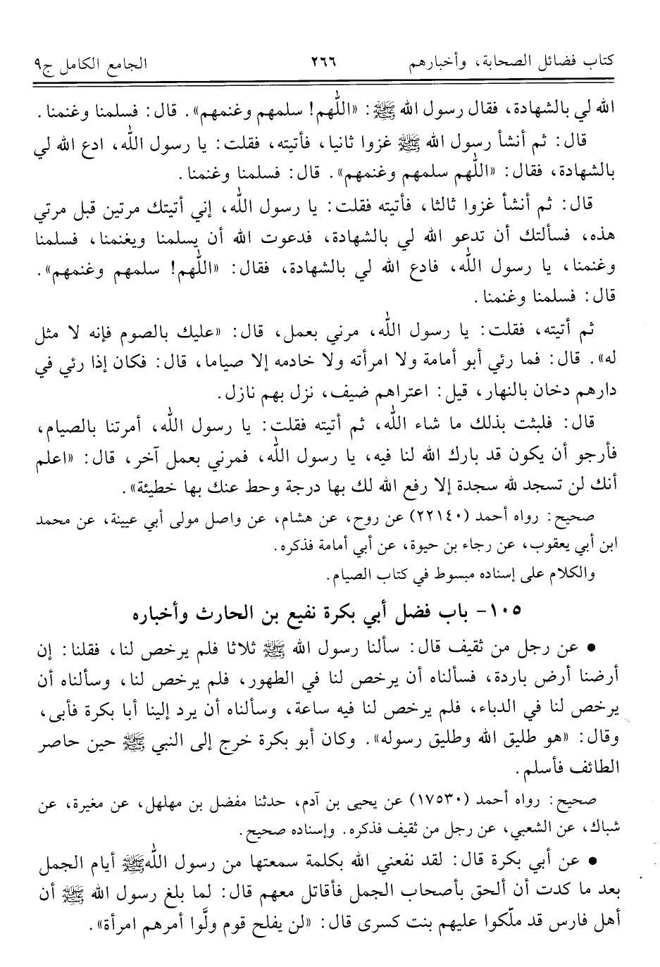 كتاب الجامع الكامل في الحديث الصحيح الشامل المرتب على أبواب الفقه (اسم الجزء: 9)
