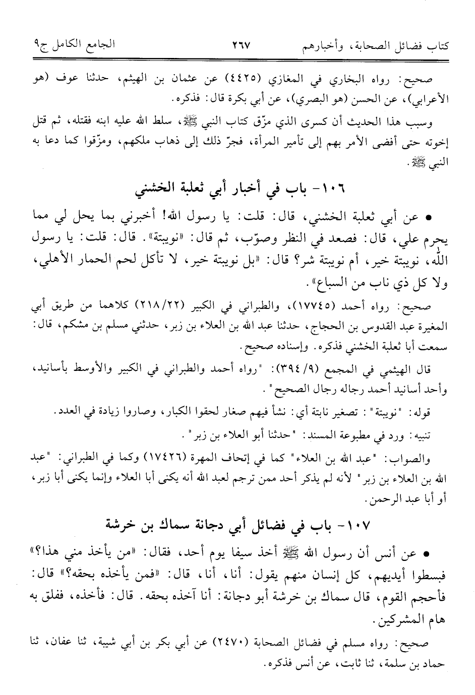 ١٠٦ - باب في أخبار أبي ثعلبة الخشني
