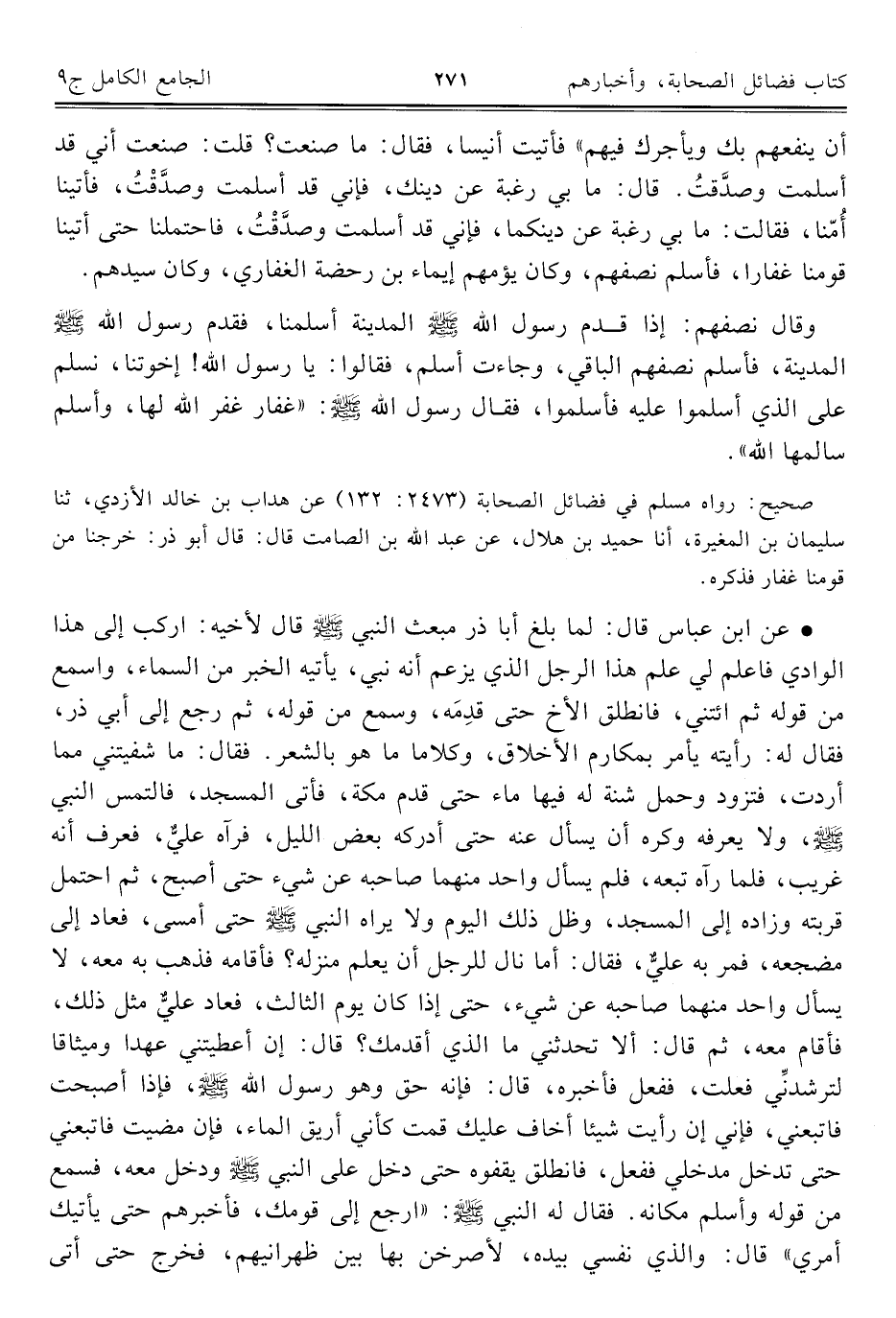 كتاب الجامع الكامل في الحديث الصحيح الشامل المرتب على أبواب الفقه (اسم الجزء: 9)