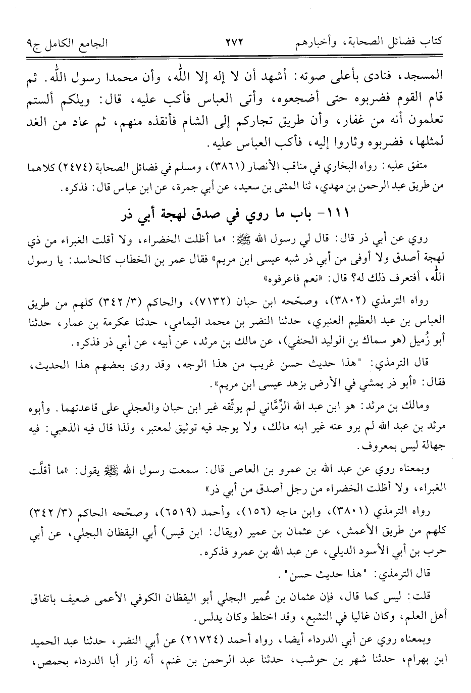 ١١١ - باب ما روي في صدق لهجة أبي ذر ّ