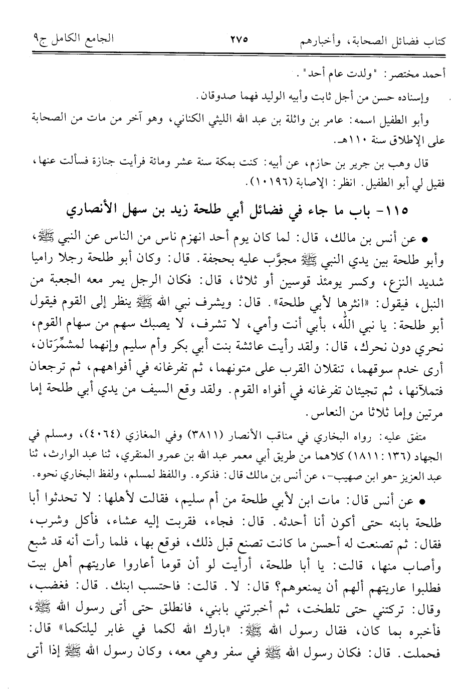 ١١٥ - باب ما جاء في فضائل أبي طلحة زيد بن سهل الأنصاري