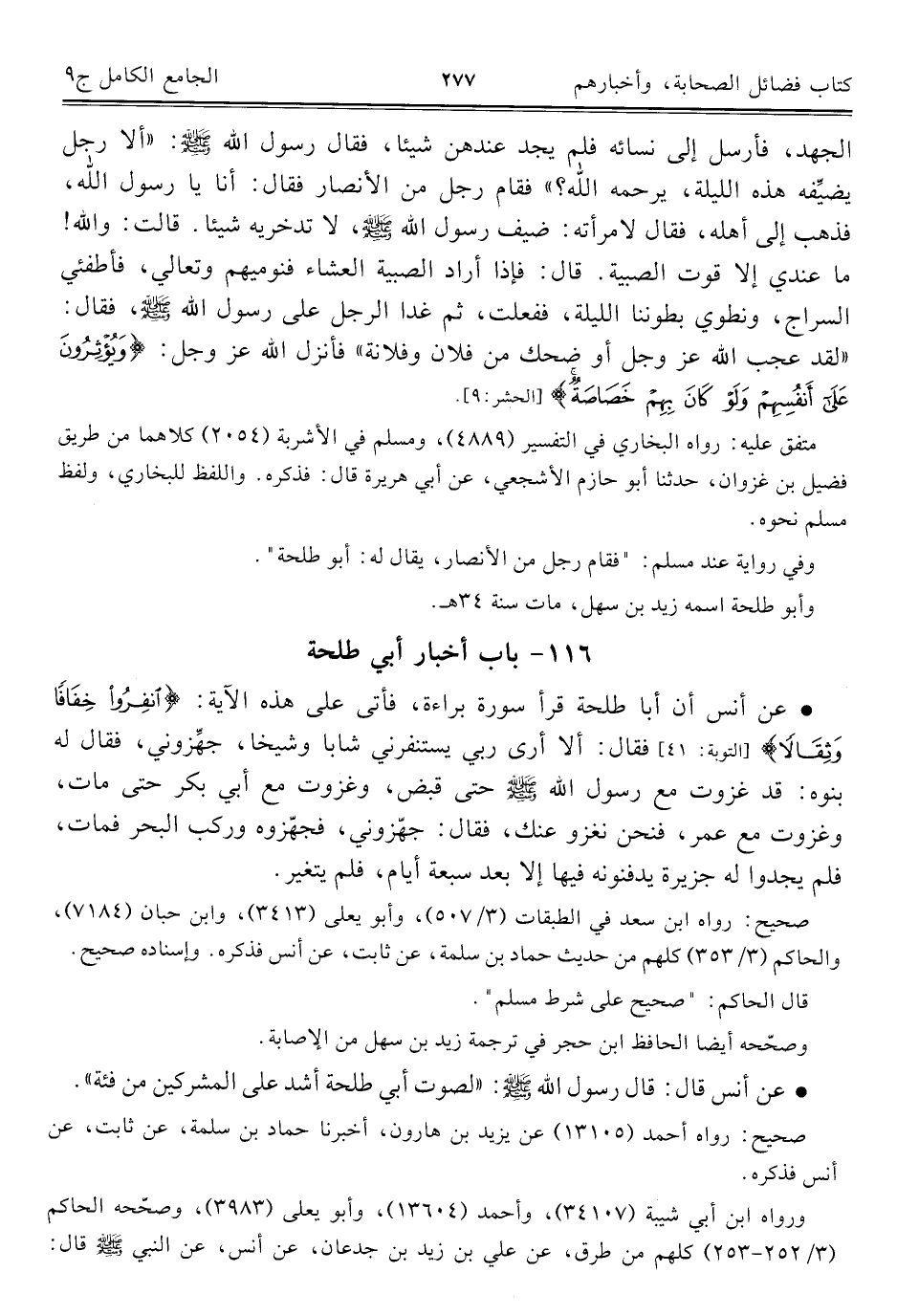 كتاب الجامع الكامل في الحديث الصحيح الشامل المرتب على أبواب الفقه (اسم الجزء: 9)