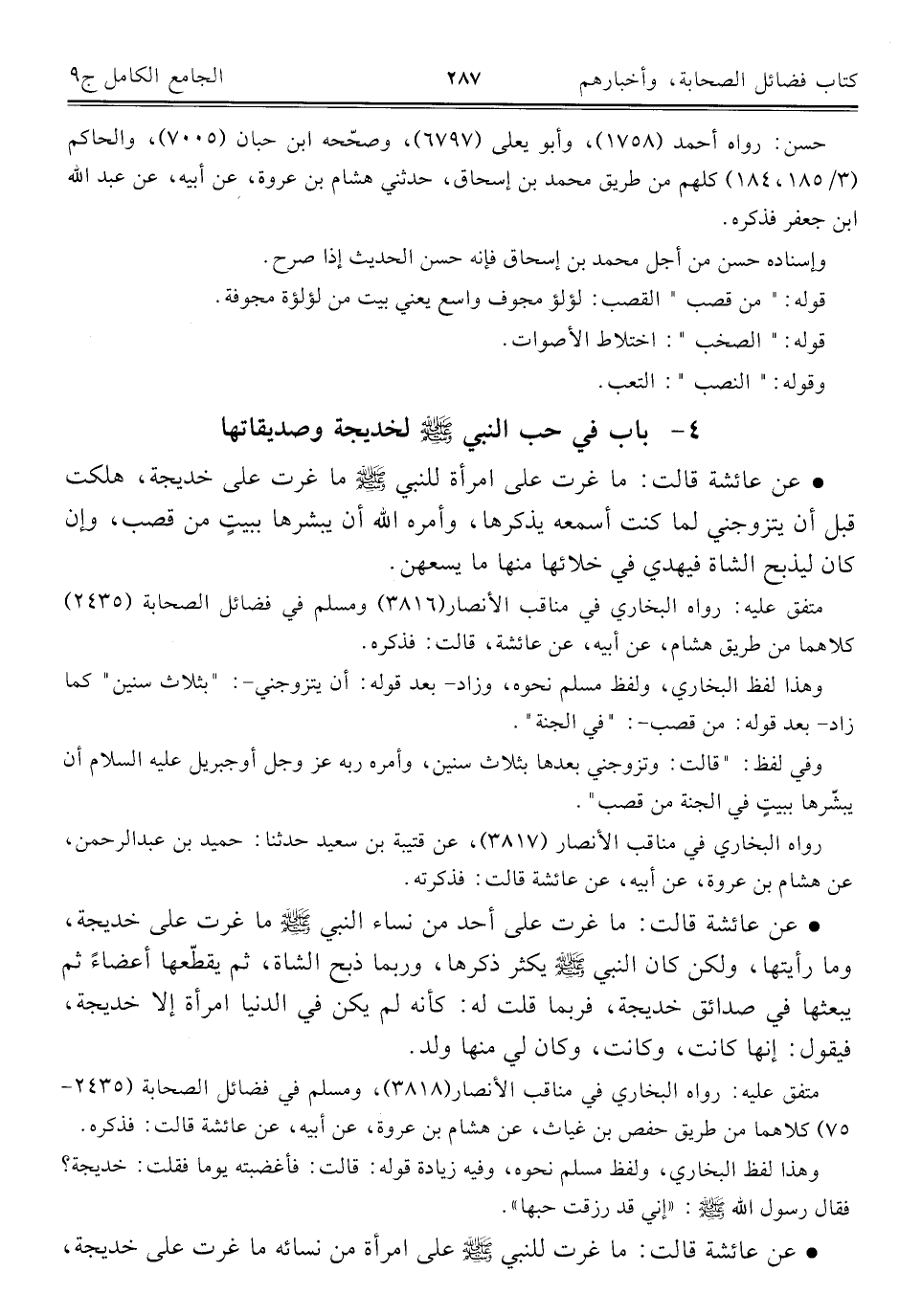 كتاب الجامع الكامل في الحديث الصحيح الشامل المرتب على أبواب الفقه (اسم الجزء: 9)