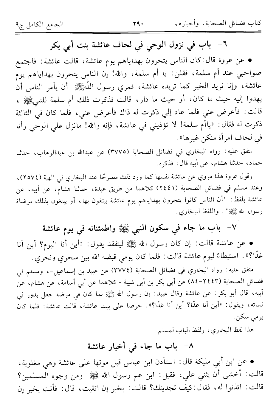 كتاب الجامع الكامل في الحديث الصحيح الشامل المرتب على أبواب الفقه (اسم الجزء: 9)